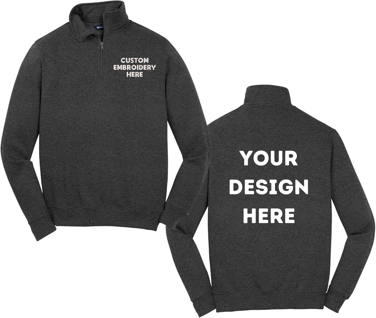 Make your brand stand out with this customizable quarter zip pullover sweatshirt. Perfect for business teams, corporate events, or promotional merchandise, this versatile garment features ample space for your custom design on both front and back. The classic colors serves as an ideal canvas for your logo or artwork. Crafted with comfort in mind, this pullover combines style with functionality, featuring a sturdy quarter-zip closure and ribbed cuffs and waistband for a secure fit. The relaxed cut allows for easy movement while maintaining a professional appearance. Whether for uniform wear or special events, this sweatshirt offers excellent customization potential for businesses looking to showcase their brand. The durable construction ensures your custom design remains crisp and visible, while the cozy fabric keeps you comfortable throughout the day. Available in various sizes, this pullover is an excellent choice for creating cohesive team apparel or promotional merchandise that makes a lasting impression.