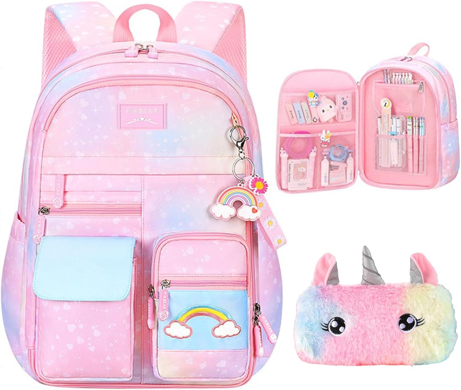 Large Capacity, Multi Pocket. We have carefully designed the school backpack pockets, with a total of 18 pockets of different sizes. There is a laptop compartment pocket in the main pocket. The Secondary zipper pockets has a unique design that can be opened 180 degrees. There is an anti-theft zipper pocket on the back of the backpack.