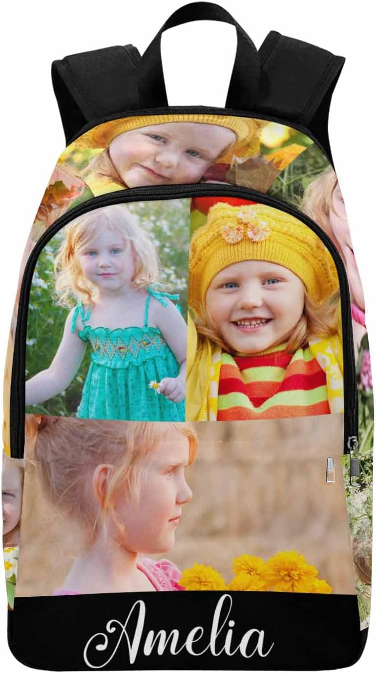 M YESCUSTOM Custom Children Backpack Personalized Elementary High School Bookbags with Photos for Boys Girls Customize Your Picture Lightweight Laptop Bag for Women Men Camping Hiking Travel
