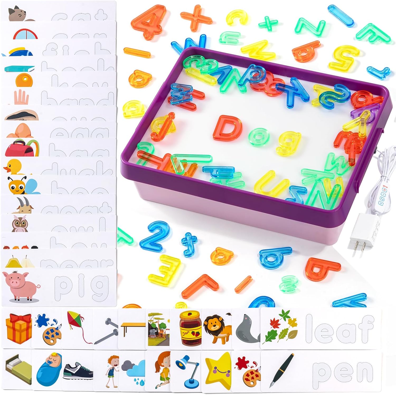 • 46 Activity Cards: Comes with 46 engaging double-sided cards (20 large + 26 small)—designed to extend learning through guided tracing, matching, sequencing, and creative challenges on your light table for kids