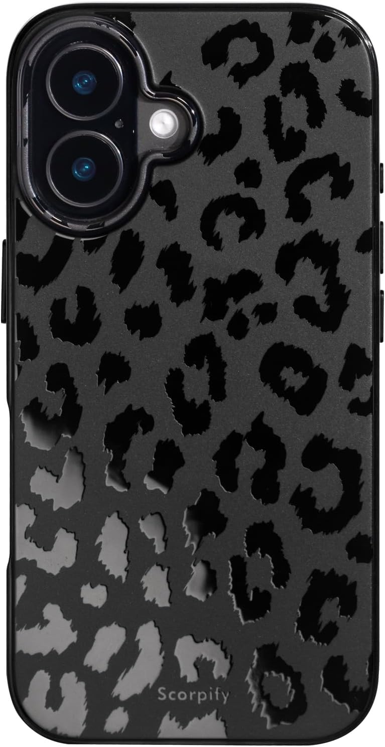 SCORPIFY for iPhone 16 Pro Case [Compatible with MagSafe] with Black Clear Leopard Cheetah Print Design, Cute Clear Magnetic Phone Cover for Women Girls, [Non Yellowing] Slim Shockproof Bumper